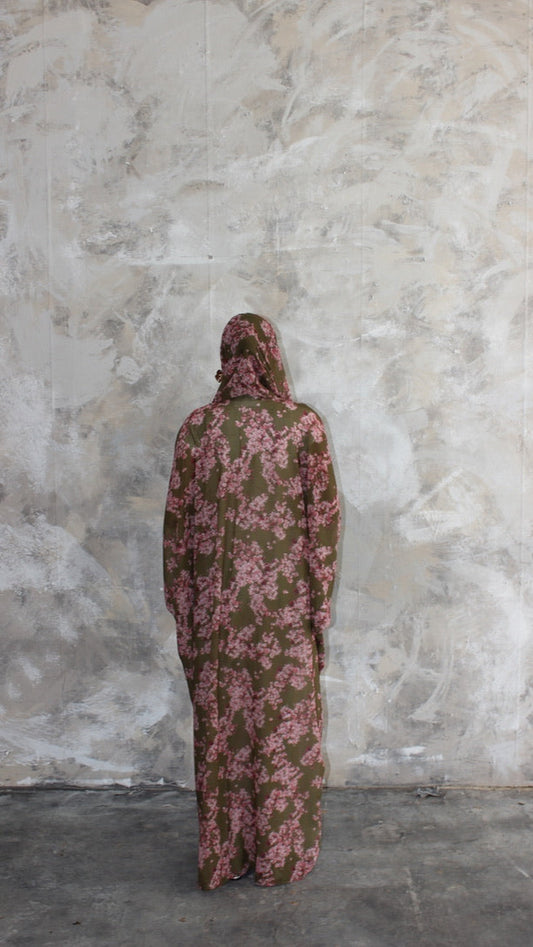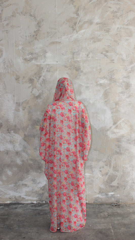 Sommer Retro Pink Printed Kimono and Scarf Set