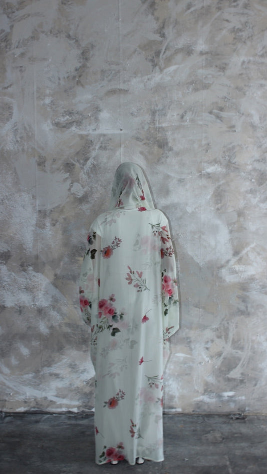 (Pre-order only. This product is made to order and is non-refundable.) Sommer Mint Printed Kimono and Scarf Set