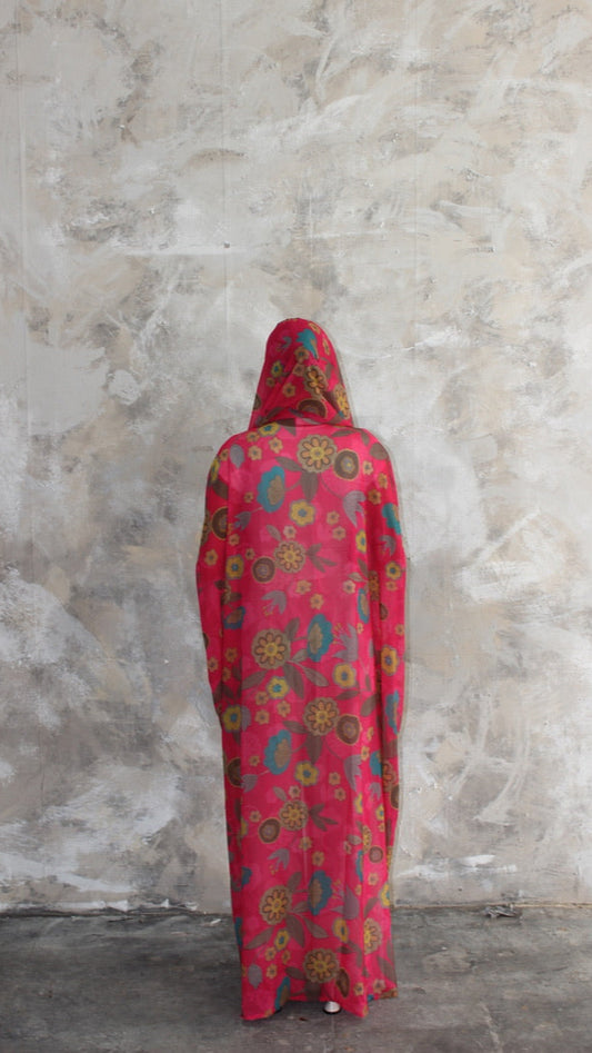 Sommer Retro Pink Printed Kimono and Scarf Set