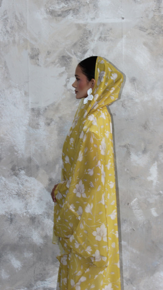 Sommer Mustard Yellow Printed Kimono and Scarf Set