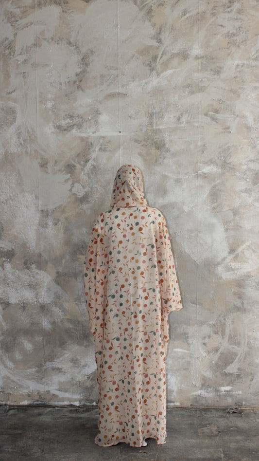 Sommer Butter Cream Printed Kimono and Scarf Set