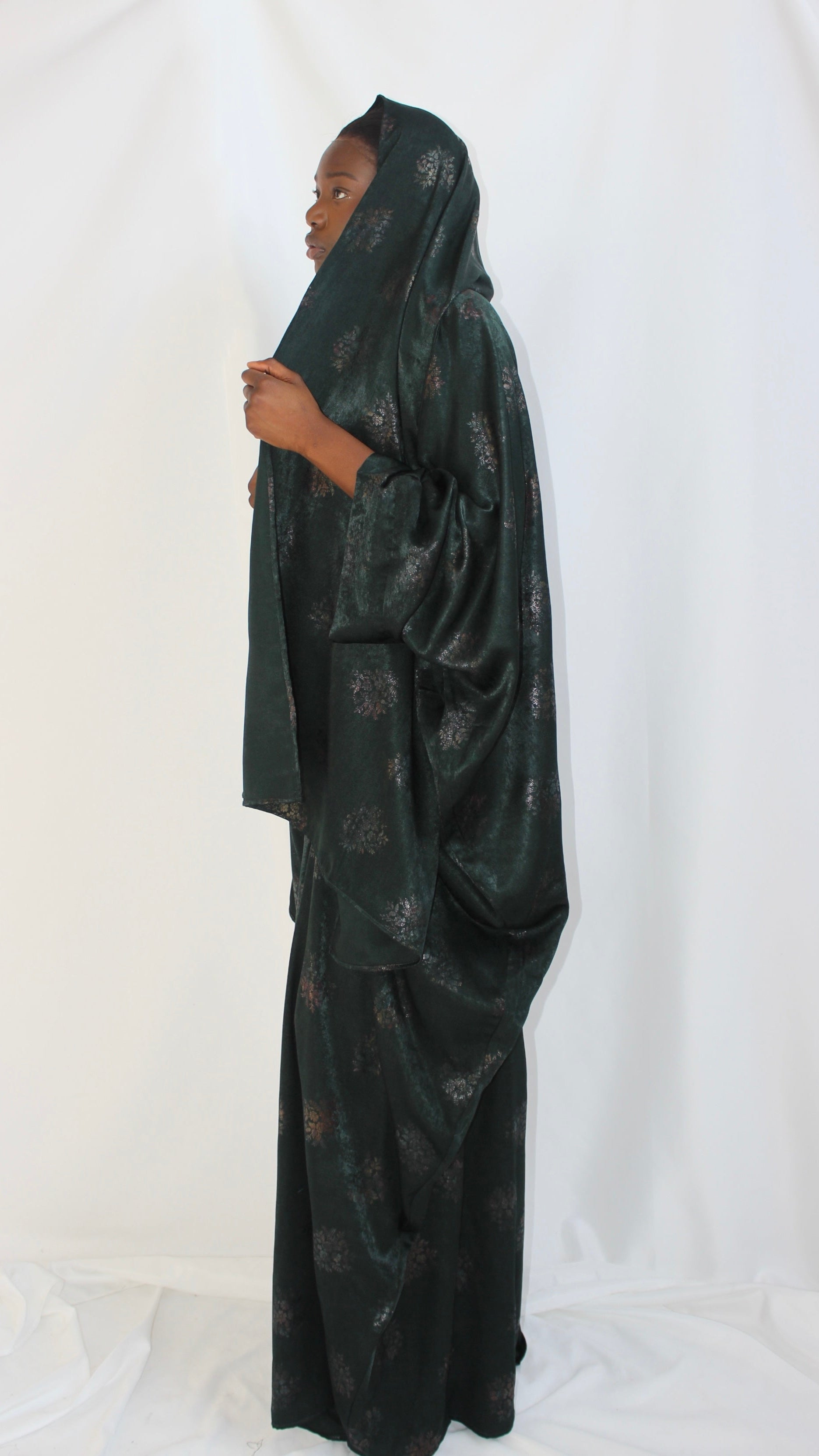 Hanifa Print Abaya & Scarf Set in Dark Green