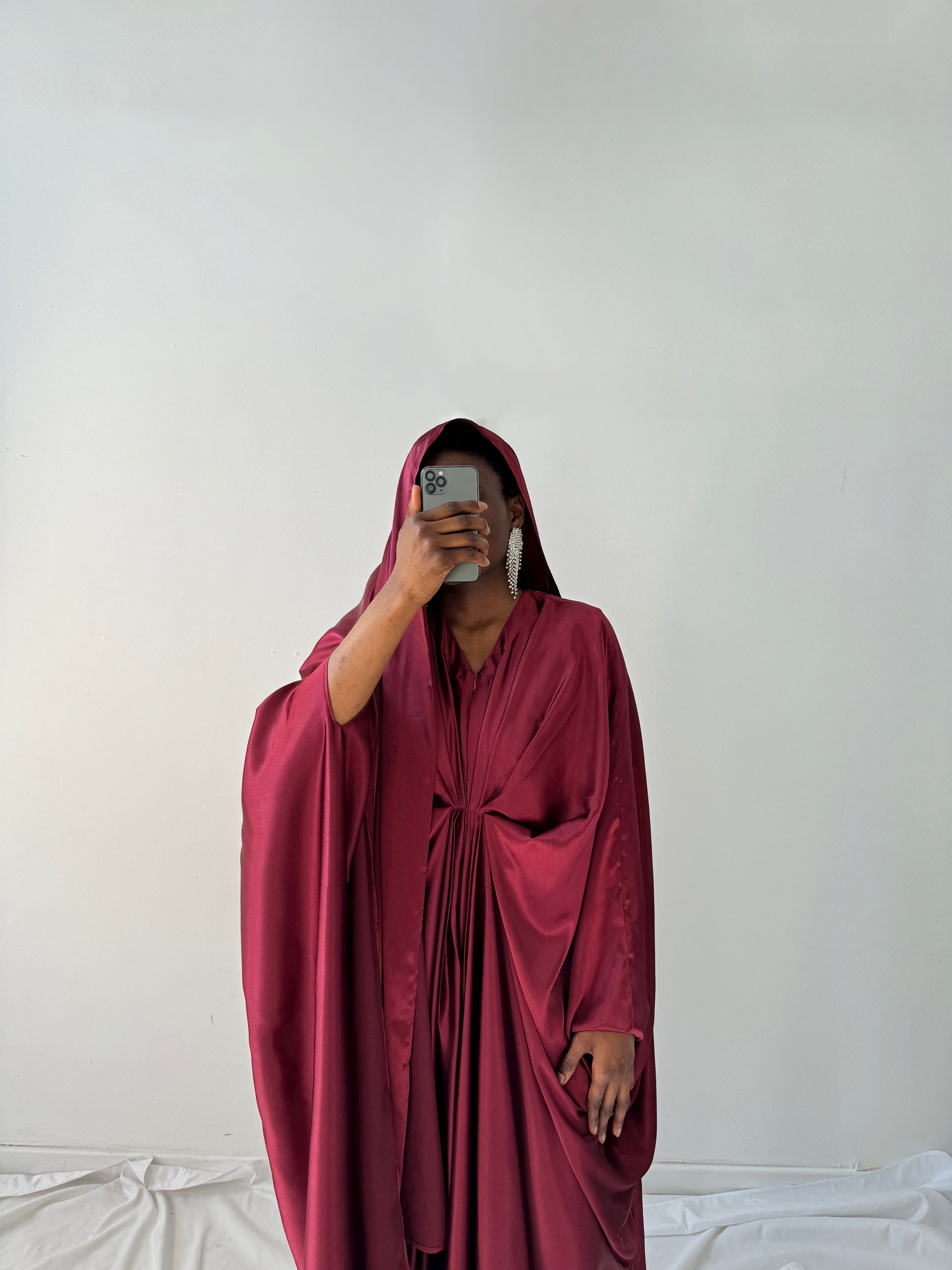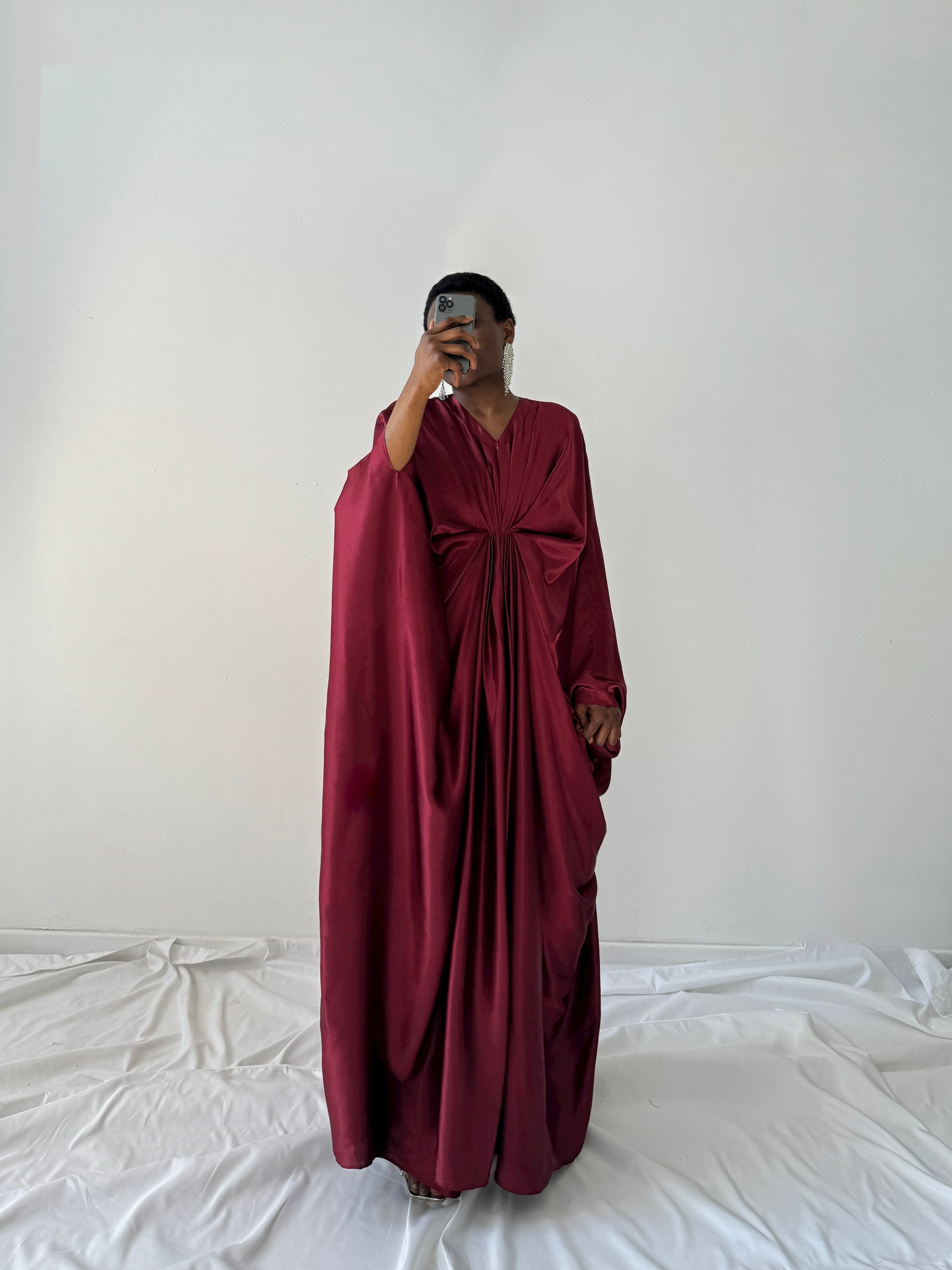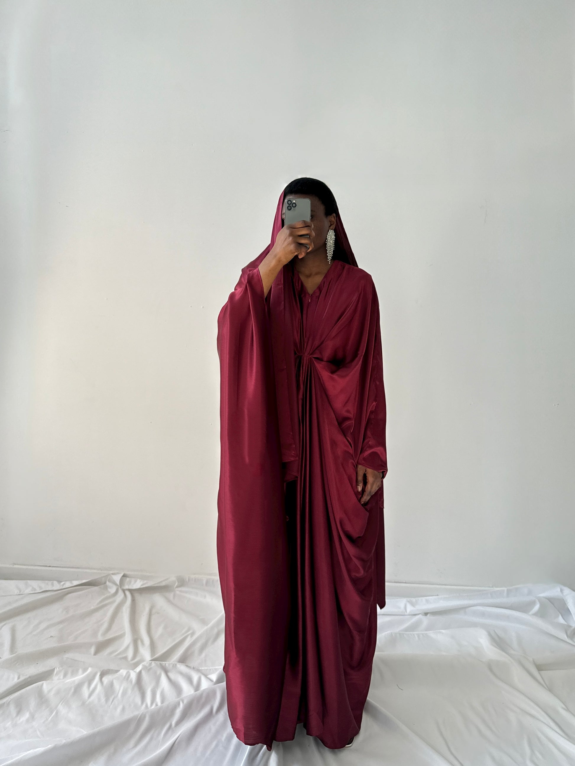Kanzah Kaftan Dress & Scarf Set in Maroon