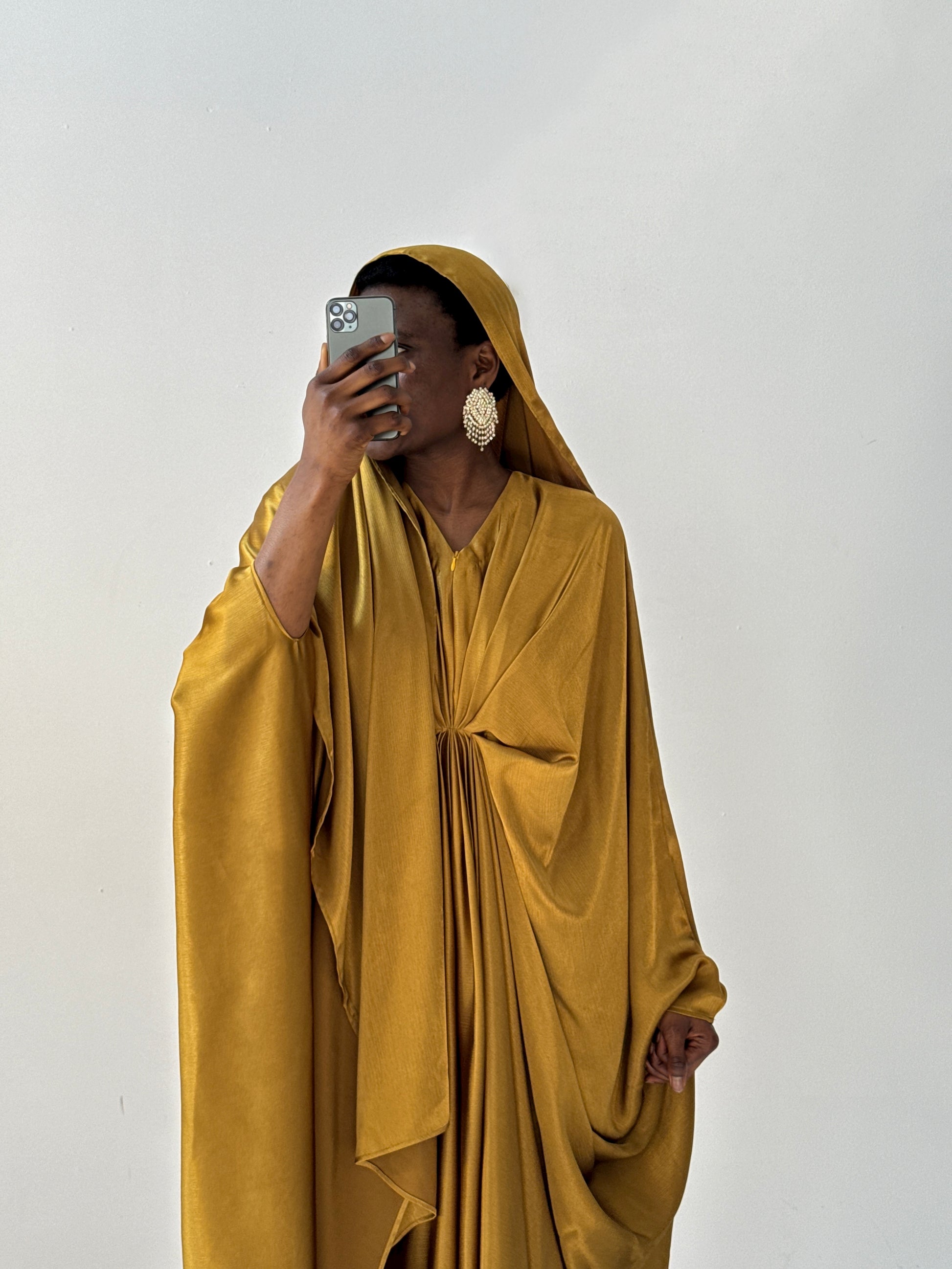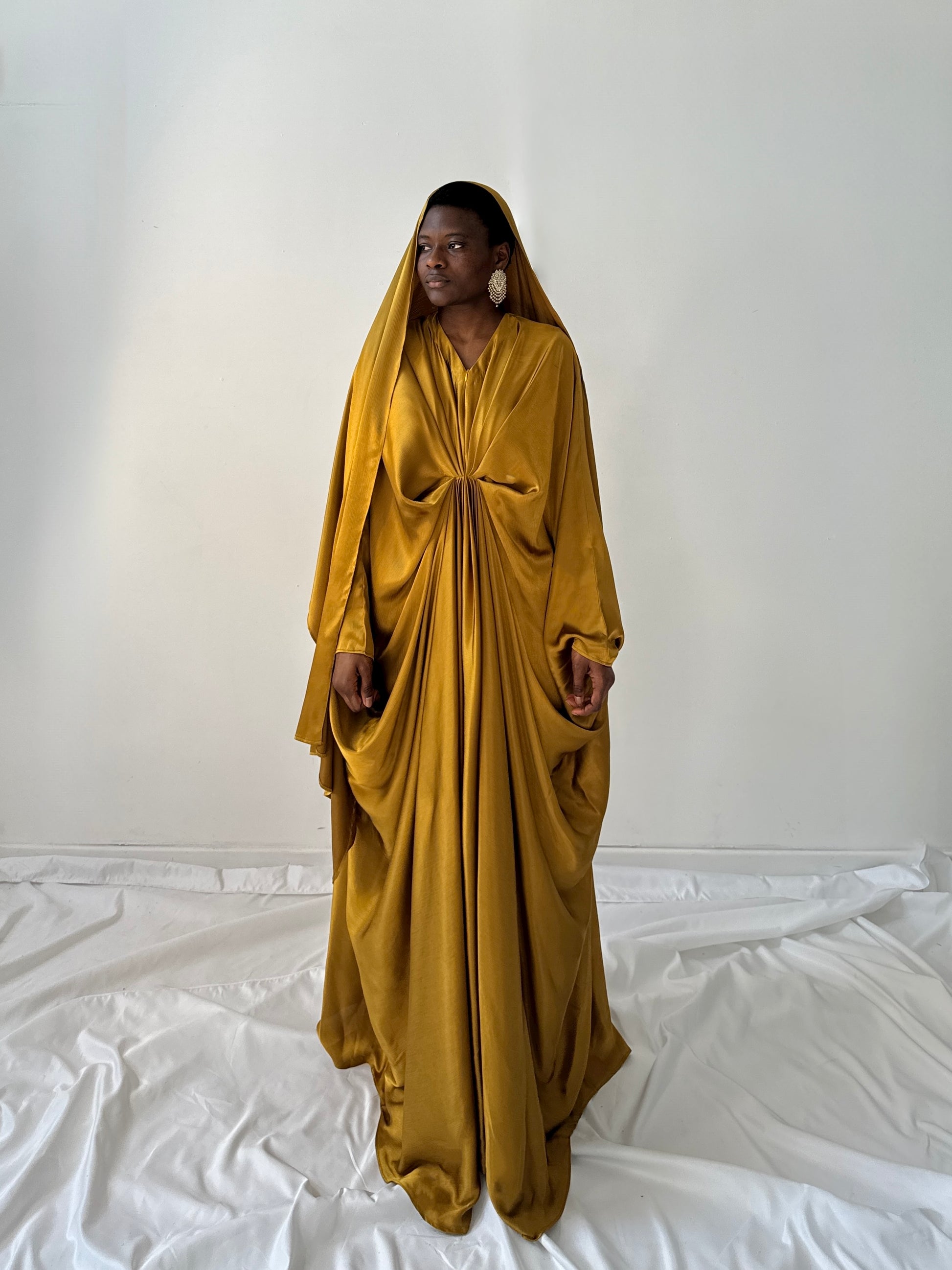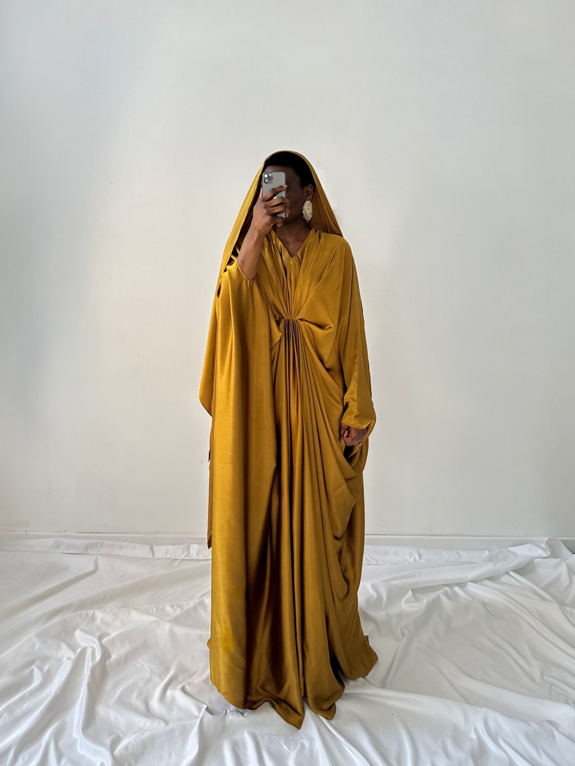 Kanzah Kaftan Dress & Scarf Set in Mustard Gold