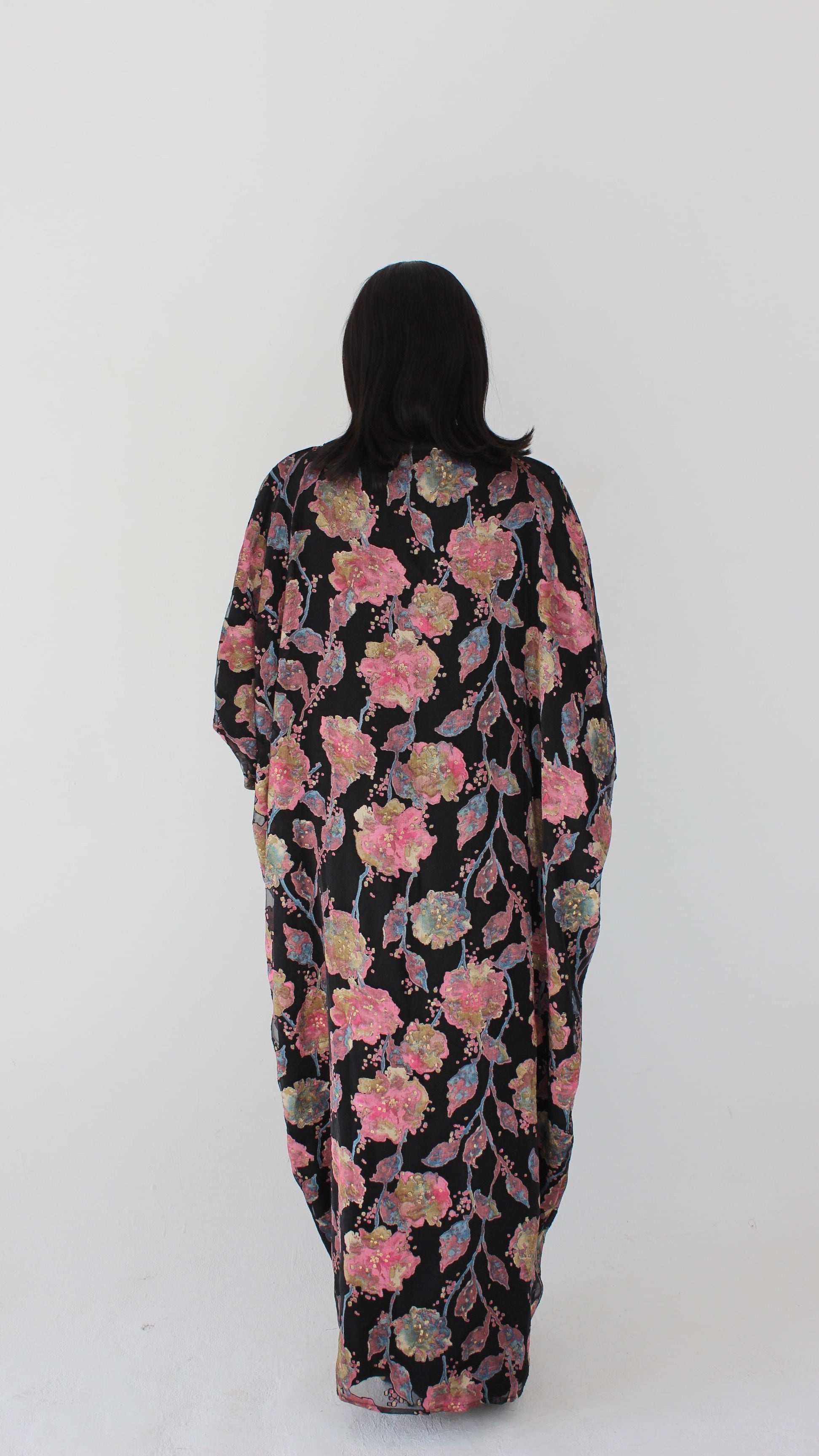 Wafa Print Kaftan Style Dress in Black and Pink