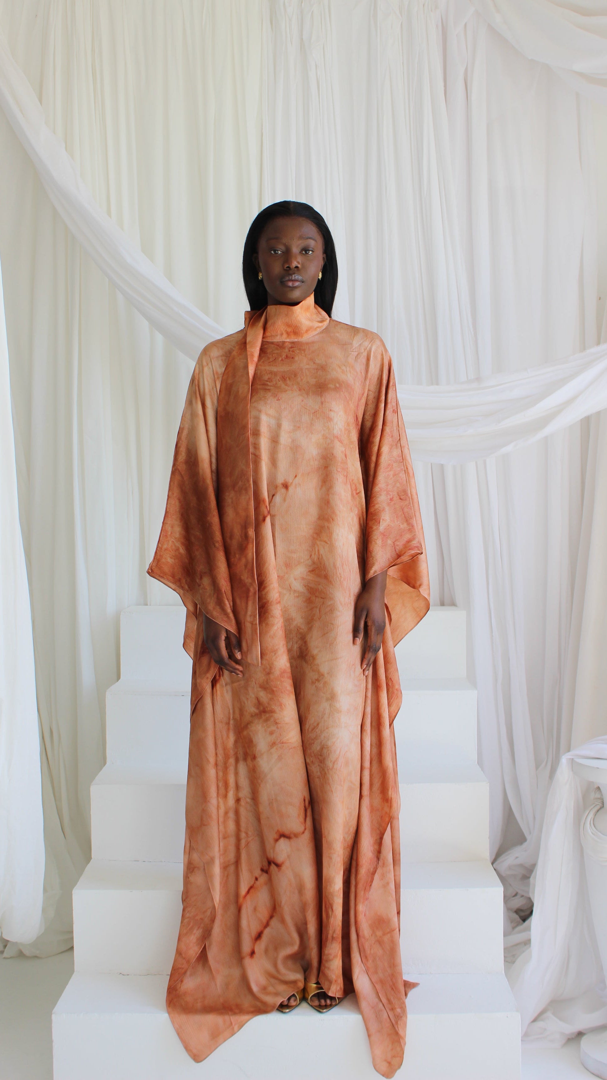 KATSUMI LIGHT ORANGE PRINT KAFTAN DRESS